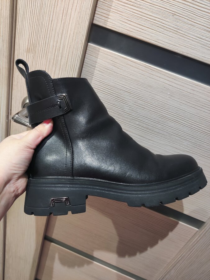 7. Демисезонные ботинки Челси, р36-37, 23,5 см по стельке, носила совсем мало, но требует ремонт 1 ботинок, нужно приклеить/ пришить подошву ( ребенок несколько раз хорошо наступил на задник и оторвалась подошва). В связи с этим цена символическая 500 руб. Покупала за 3 тр. Стоимость ремонта рублей 500.