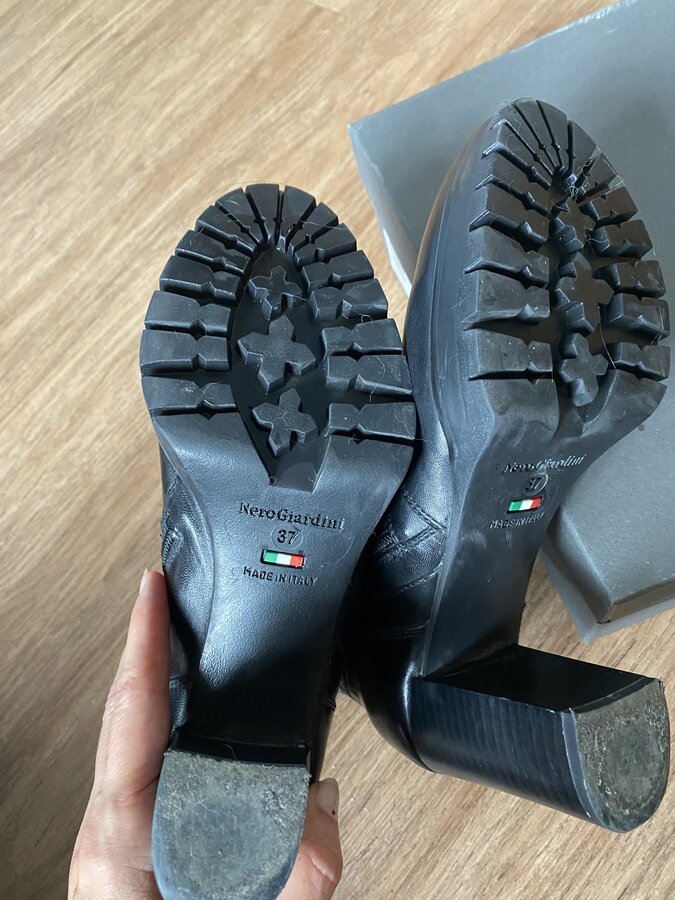 Производство Италия, размер 37 (соответствуют), натуральная кожа внутри и снаружи.