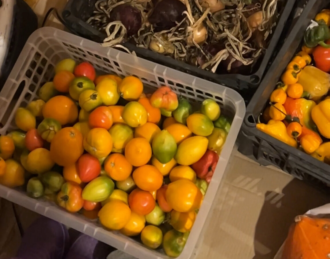 Один год, позапрошлый что ли помидоры мы доедали 1 января. Хранили в ящике пластмассовом в тамбуре. В этом году не много было осенью, давно съели. В выходные вот покупали помидоры. Они ровные красивые, но свои страшненькие повкуснее были)