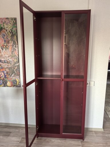 меняем расположение полок под задачи семьи. Например, мы дозаказали стеклянные полки (600 руб за штуку), чтобы разместить фужеры