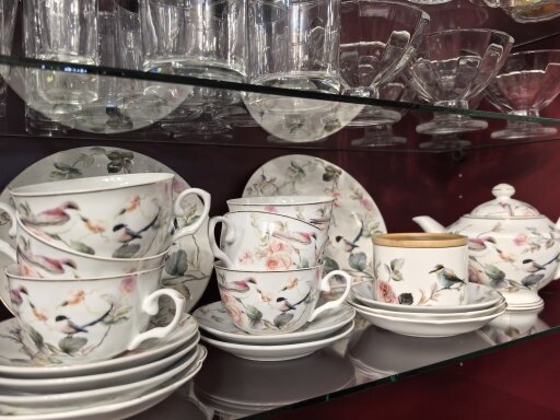 одна полка = один сервиз или тип посуды. Например, фужеры с тарелками не ставим на одну полку