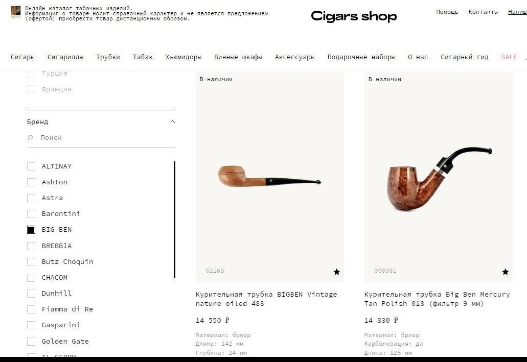 Трубка “Big Ben”, протестирована пару раз. Мой муж трубку не курит, но надо было для протокола.