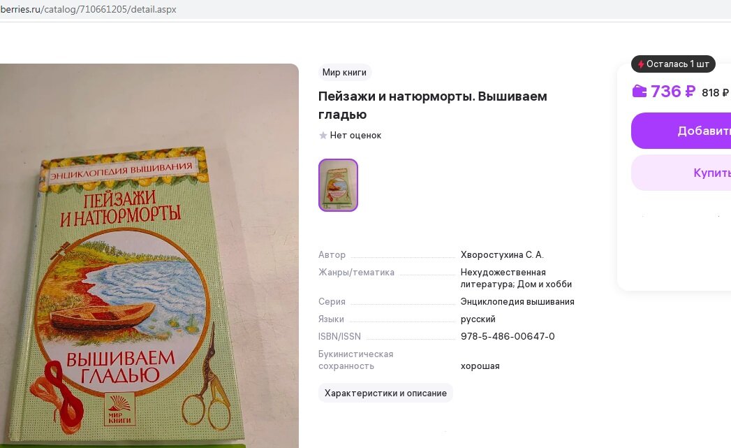 Очень редкая новая книга по вышивке гладью пейзажей и натюрмортов.
