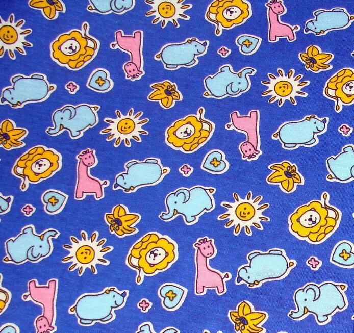 Трикотаж синий с детским рисунком.