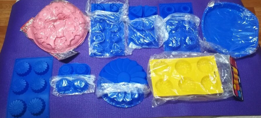 7 новых и 1 б/у (лист с шестью ромашками, использован пару раз, но даже не для жарки, а как форма для мыла).