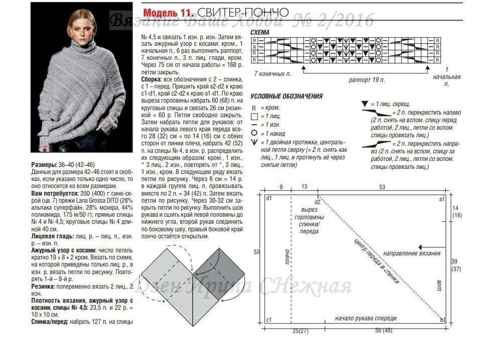 Добрый день. Вязальщица я начинающая - несколько плечевых есть, но только по готовым описаниям и схемам. И вот, очень захотелось маме связать свитер, но одобренный ей вариант по описанию размеры имеет 36-40(42-46). А у мамочки грудь не маленькая, и хорошо сидящий джемпер по груди имеет полуобхват 64см. И в распоряжении моём имеются только эти сведения, сама мама в более, чем двух тысячах километров, к сожалению. Если бы полотно шло по прямой, то даже у меня вопрос бы скорее всего не вызвало, но он вяжется по диагонали. И пока просто смотрела на описание и заказывала пряжу, мне казалось, что достаточно к размеру в скобках добавить умноженную на два разницу между первым и вторым размером, и таким образом выйти на нужные параметры. Но уже отвязав 100 грамм, начала сомневаться.