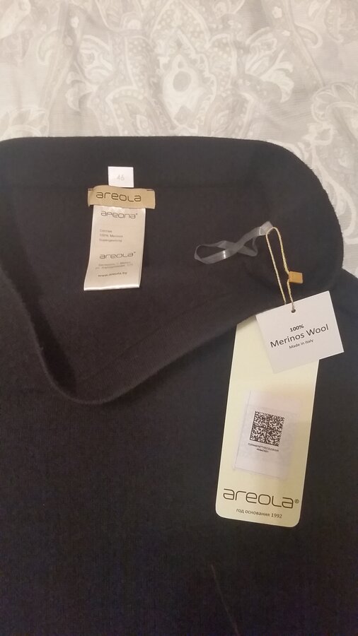 джемпер из шерсти экстрафайн- ультратонкой мериносовой шерсти с холки ягнят толщиной волокна 16-17 микрон, считающейся эталоном качества и используемой для производства элитной одежды