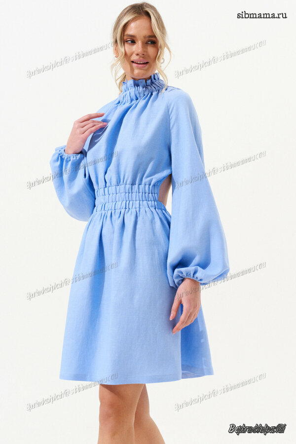 •Платье мини из поливискозной ткани с матовым блеском. Платье прилегающего силуэта с длинным рукавом и плечевыми накладками. V-образный вырез плавно переходит в декоративную застёжку на металлическую пряжку. Под грудью небольшой вырез. Юбка асимметричного кроя с имитацией запаха. Застёжка на потайную молнию сзади.