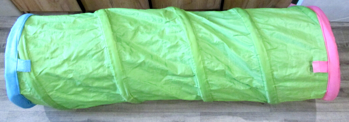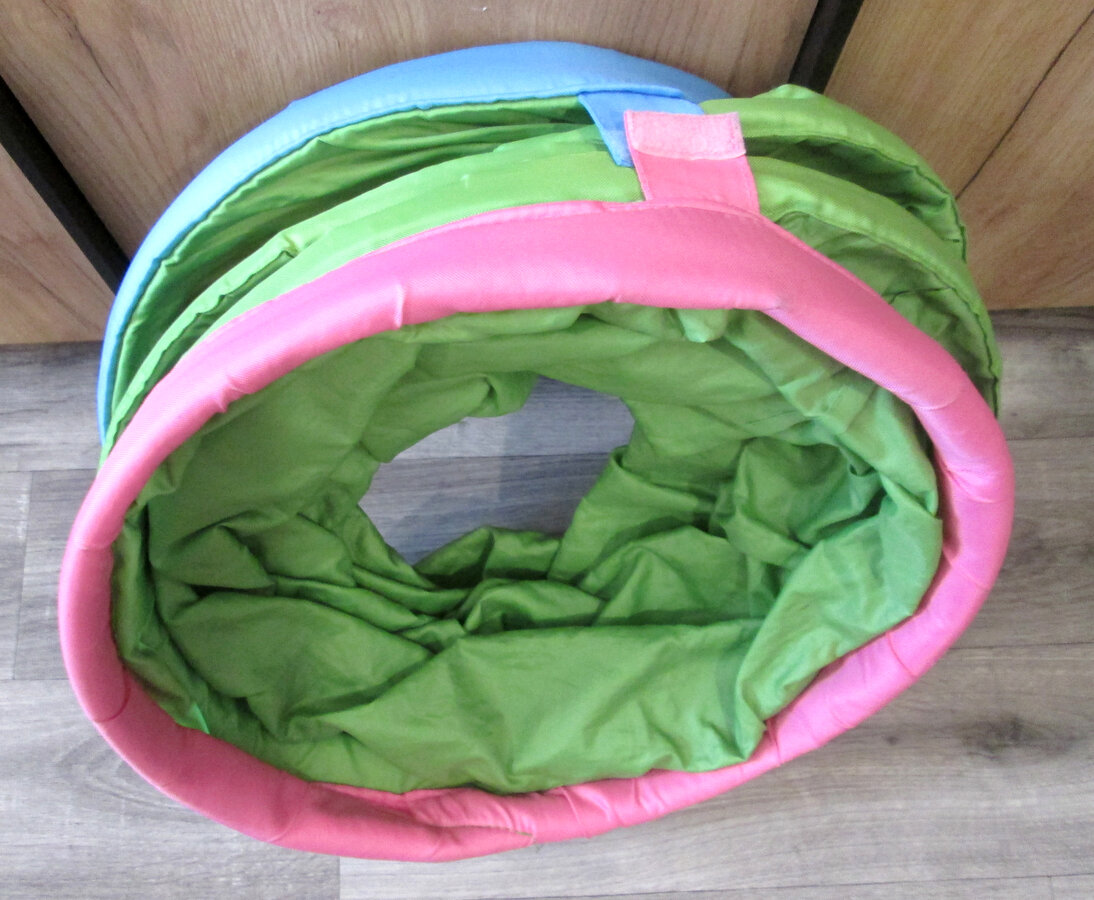 Конструкция выполнена в виде складывающейся трубы, по которой малыш сможет ползать. Кроха придумает миллион историй и игр для туннеля, потренирует фантазию и воображение. Ползая по нему, ребёнок развивает координацию движений и учится ориентироваться в пространстве. Туннель можно установить как в небольшой комнате, так и на свежем воздухе. Его легко передвигать по помещению (справится даже кроха) и удобно брать с собой — конструкция компактно складывается.
