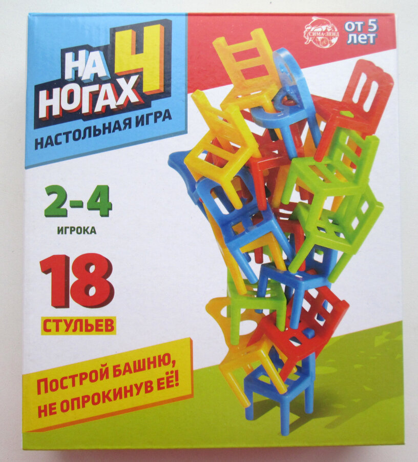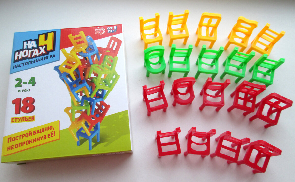С настольной игрой «На 4 ногах» ребёнок прокачает ловкость, координацию движений и логическое мышление. Ведь, чтобы не уронить башню, нужно продумать, где расположить стульчик.