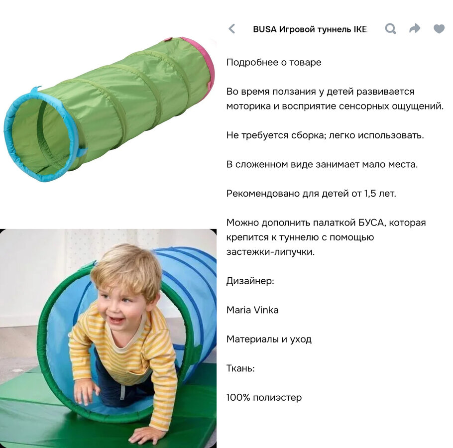 Детский игровой туннель(труба для ползанья)- оригинал ИКЕЯ - отдам за 1.500 р.