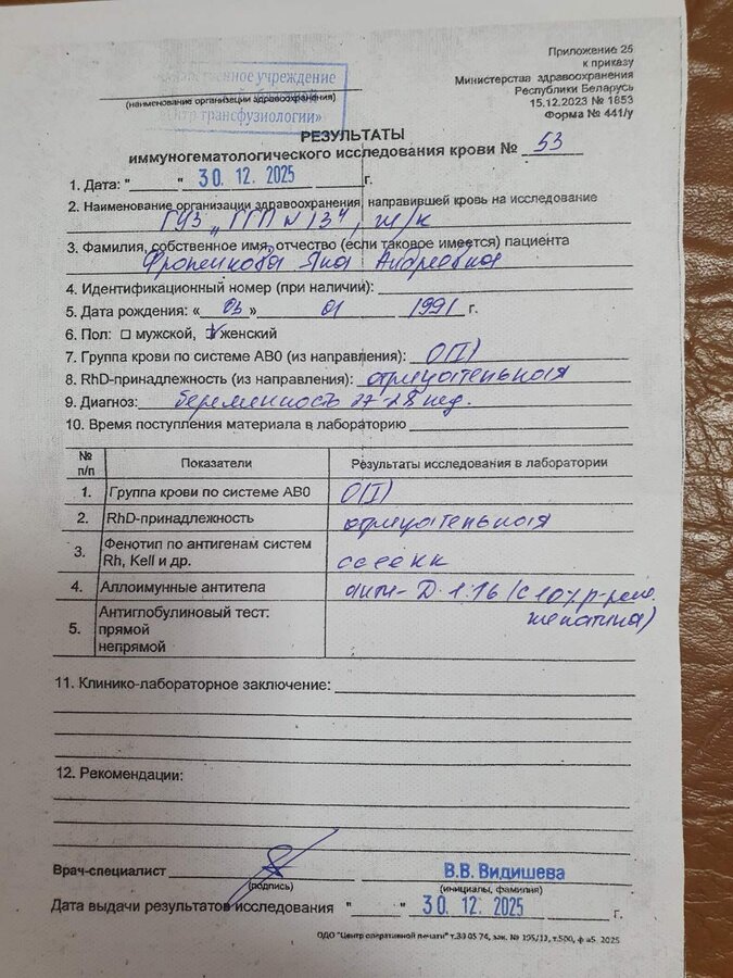 10.01. Гемотест. Отрицательно.