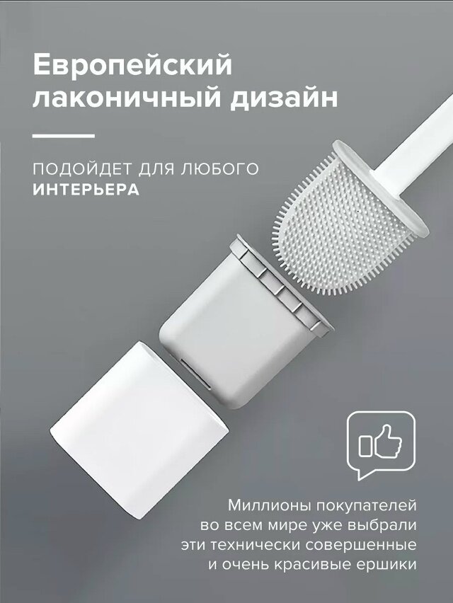 Стильный силиконовый ершик станет отличной заменой ершиков с жесткой щетиной, которая царапает поверхность унитаза и лохматится со временем. Благодаря гибкой форме эфективно очищает даже труднодоступные места.На ершике не скапливаются бактерии. Способ применения достаточно простой. После очистки унитаза ершик нужно промыть под струей воды, стряхнуть и поставить в подставку. В комплекте идёт крепление на стену.