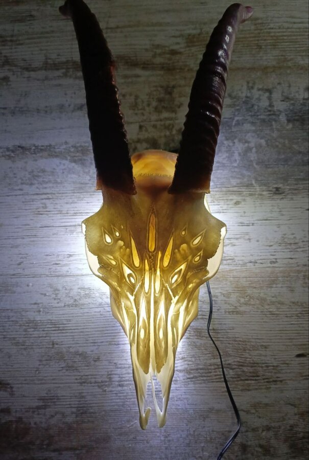 Попробовала работу с рогом, такой ночник получился