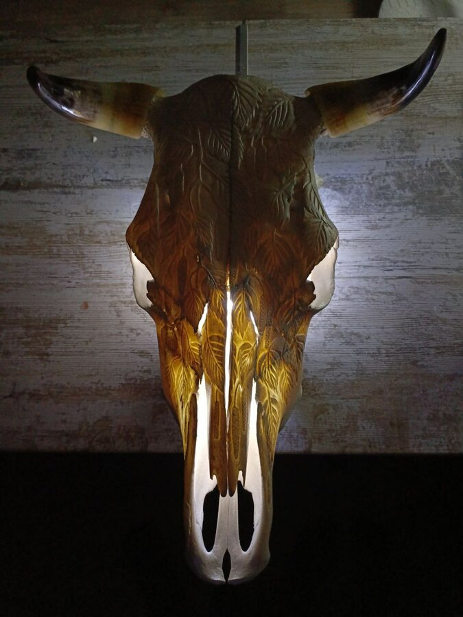 Бычок - светильник тонирован, резьба