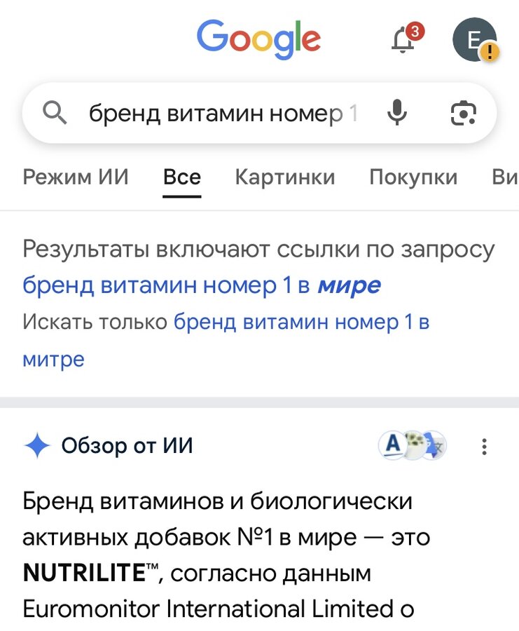 По мнению ИИ Бренд Витамин номер 1 в Мире - Nutrilite!