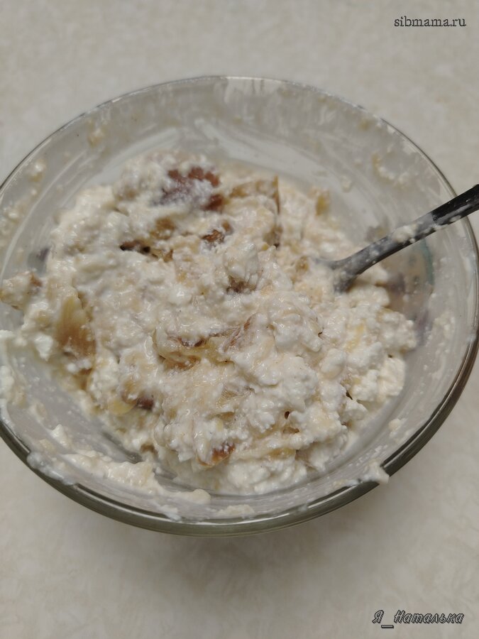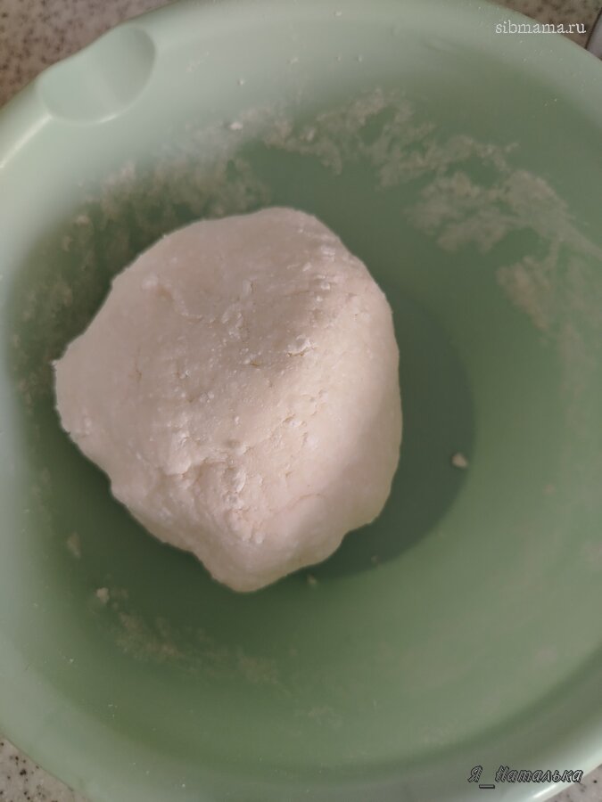 Замесить тесто, сначало ложкой, потом собрать в комок
