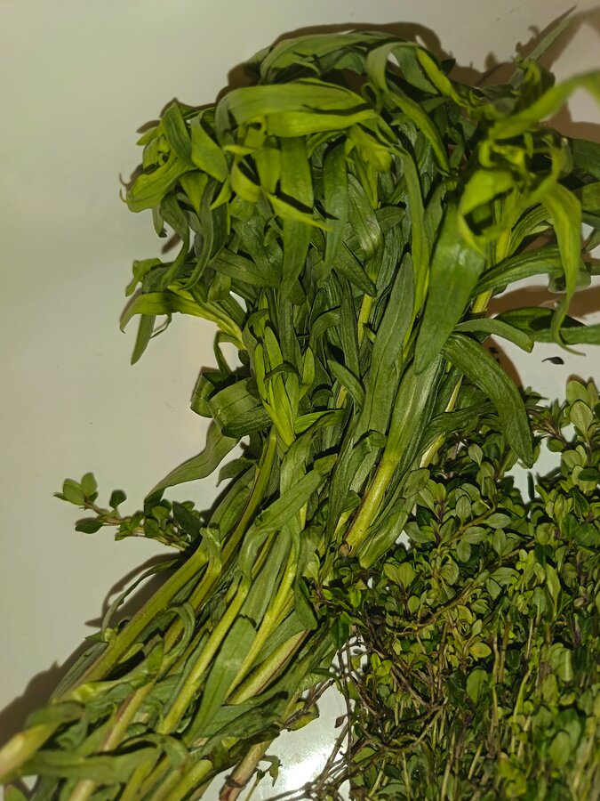 Искала в определителях и по фото, возможно тархун и тимьян? Помогите, не знаю где спрашивать...
