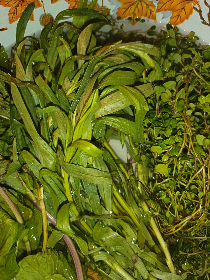 Подарили корзину зелени, с петрушкой, сельдереем, укропом, салатами, рукколой, базиликом все понятно, а вот два товарища не могу определить(