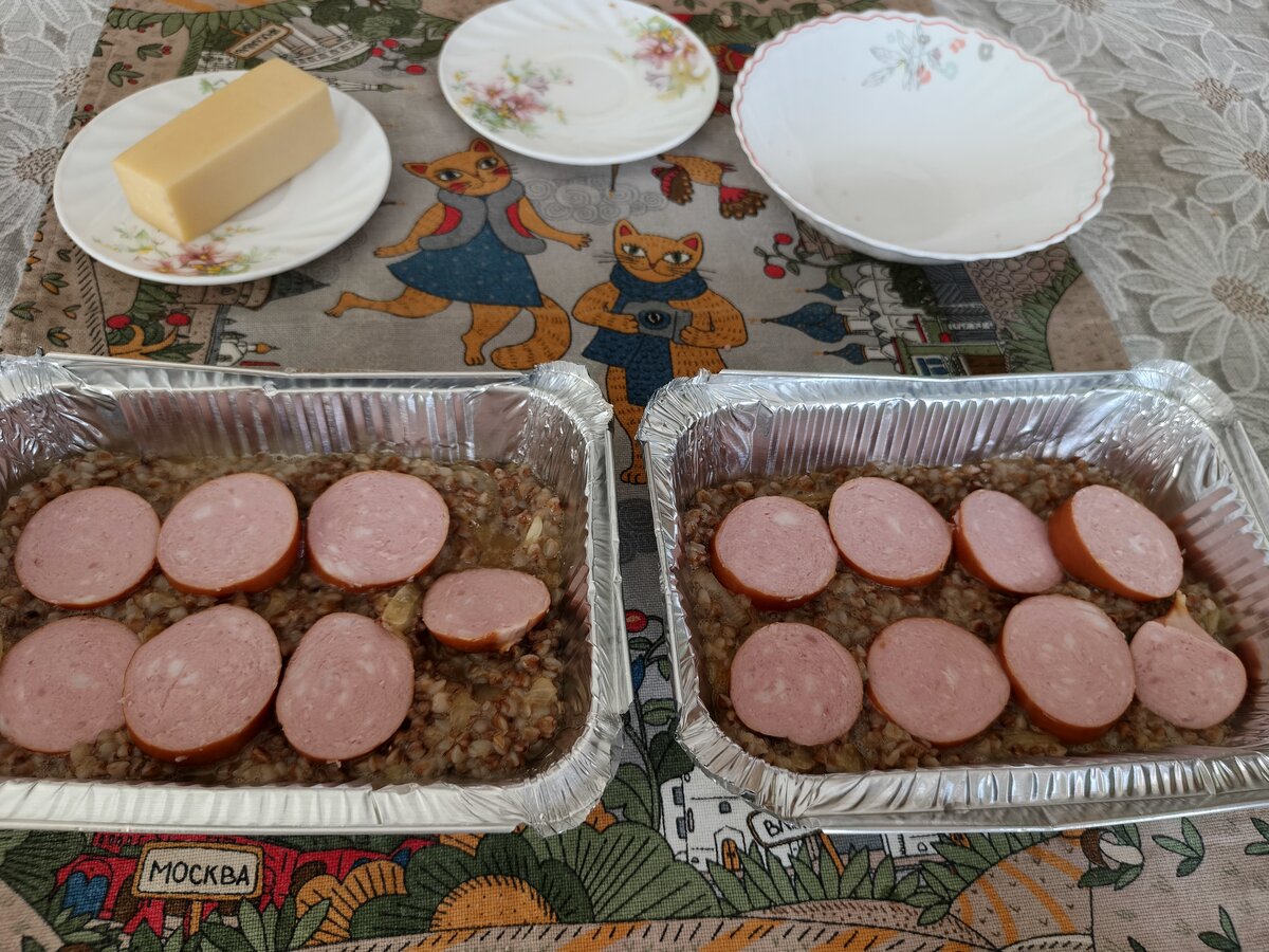 Потом выкладываем шпикачки
