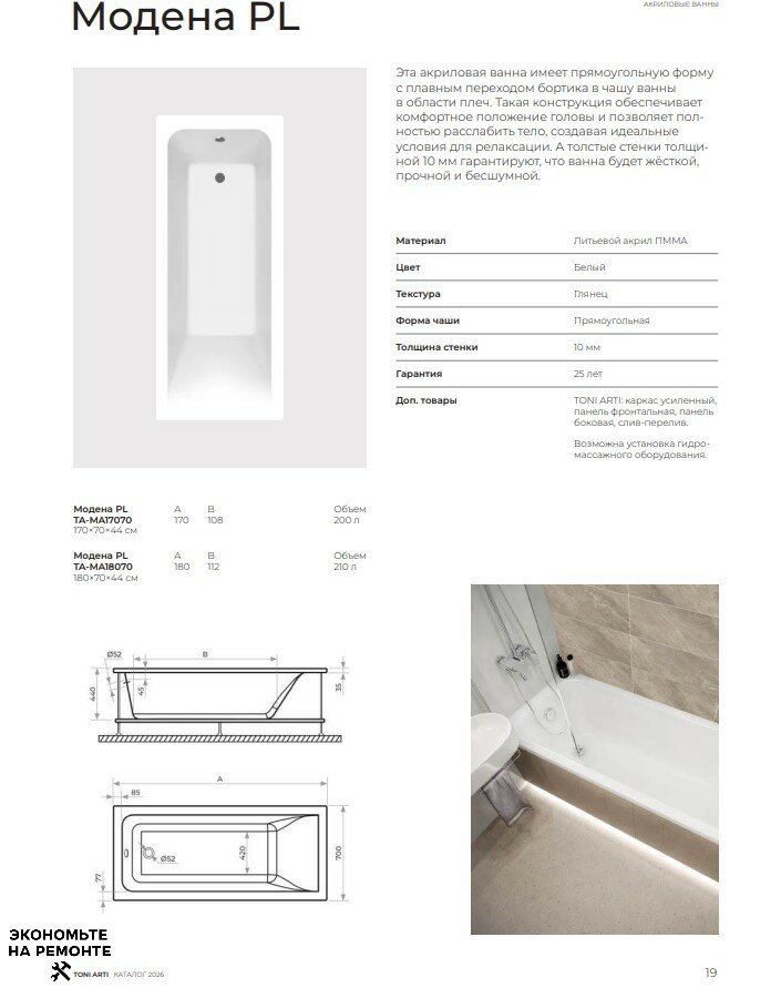 🛀 ТОЛЩЕ, ТИШЕ, НАДЕЖНЕЕ: Почему серия PL от Toni Arti (https://vannaclub.ru/catalog/vanny/akrilovye/) — это «броня» в вашей ванной.