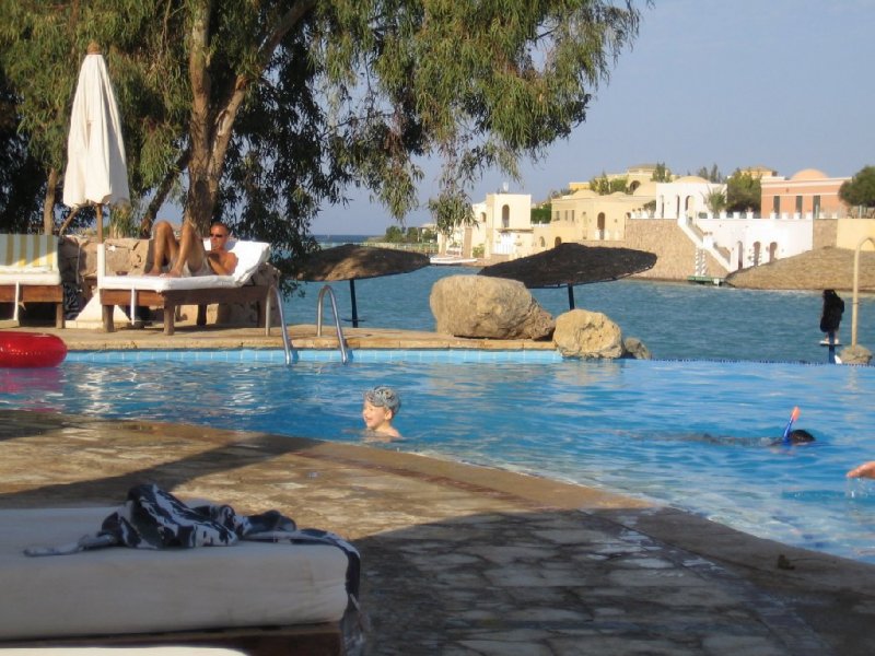 По приезду в Египет там было прохладно. В первый день, точнее ночь, когда мы прилетели я ехала в синтепоновой куртке. Потом, в течение 7 дней было прохладно. На солнце еще ничего, а вот в тени холодно. Я целыми днями ходила в джинсах и толстовке, а вечером мне и в таком одеянии было холодно. Но холодно было из-за ветра. Какой-то он холодный был. Тем не менее мы ездили на море, ездили в Эль Гуну, загорали, купались. При поездке в ЭГ купались в открытом море: вода была просто супер - очень теплая (около 25-27 градусов). Купание в открытом море, на рифе - это что-то.... незабываемые впечатления. При купании возле рифа я видела черепаху, много различных красивых рыбок, да и вообще морской живности. К рифу близко не подплывала, т.к. боялась пораниться. Муж еще медузу видел возле рифа.