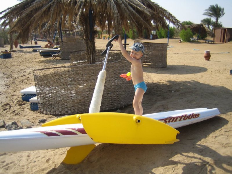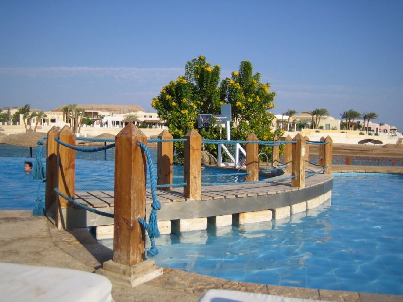 Для детей. Отель хорошо подготовлен к отдыху с детьми, единственное – скользкая плитка у бассейна. Есть детский бассейн, игрушки для песка и воды и у бассейна и у моря. Детская площадка! Мне очень понравилась – да состояние среднее, но для детишек разного возраста такая интересная в плане лазаний – мечта моего детства . Сделана из дерева, куча лесенок, качелей, горок, домиков наверху, плюс игрушки и игровая комната с играми, но там все очень серенько. Детей там играет мало, больше все у воды. Вечером детская дискотека с очень интересными композициями. Аниматоры под каждую песню придумывают движения и вместе с детьми их танцуют. Достаточно весело. Наш сын уже на второй день при звуках начинающей дискотеки вставал на своем стульчике за ужином и начинал подплясывать и нас звать танцевать . По вторникам возят в дельфинарий. Единственное – питание для малышей не предусмотрено. Каши они не знают что такое, мы взяли растворимые (и там на месте Nestle в аптеке, Шарме напротив торгового центра при входе в рынок, купили – фиксированные цены, накруток нет ). У нас был маленький чайничек – пригодился для приготовления чая и каш. Утром – папа шел за молоком с мюсли – немного малыш перекусывал, мы собирались и на завтрак все шли, где уже он кушал и яйца, и сосиски, и булочки. Поначалу кушали сразу все вместе, но так как сын у нас не сидит на месте , то решили кормить по большей части дома, а в ресторане уже кусочничать. Обедал он в основном рисом и лапшой, брали мясо ему и овощи, на сладкое - выпечку. Фрукты давали только дома – помыв с мылом. Иногда пробовали суп, но привычные нам были редко в меню. Покупали еще в Шарме пюре мясные и фруктовые, дома ели, если приготовленная пища в ресторане шла не очень. Один раз были проблемы по выносу пищи из ресторана, но мы объяснили, что ребенок маленький – больше вопросов не возникало. Пили соки, чай, там и колу первый раз попробовали – жутко понравилось, со скандалами отбирали. А так – ребенку очень понравилось! Масса впечатлений, новых слов, эмоций. Малыш, утром так активно играл на море, что к часу дня уже засыпал на руках, пока мы шли домой .