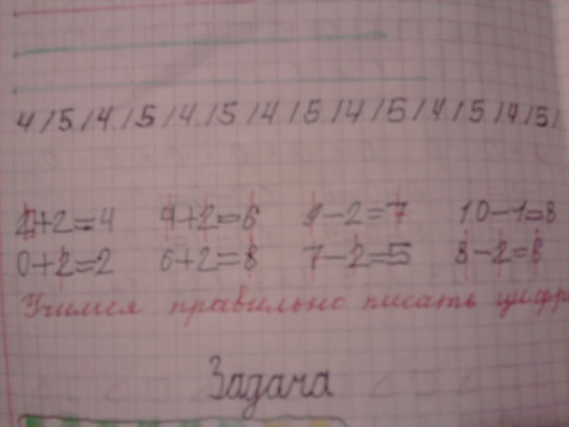 но я не пойму что именно не так? понятно что корявенько, но она старается - это не спустя рукава написано. А самое главное я не вижу разницу между зачёркнутыми цифрами и незачёркнутыми (с "7" понятно - нет перекладинки)