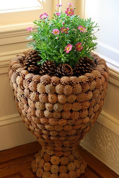 Блин ну я хочу такую штуку сотварить только вот мозгов не хватает как же они там крепятся др к другу.На даче как раз 3 сосны возле дома стоят и шишек там тьма тьмущая.предлагайте идее как крепить а я попробую смастерить и выложу что получилось!