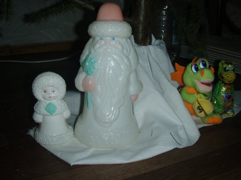 а какой Дед Мороз у нас был - просто волшебство: ватный, покрытый тонкой папиросной бумагой с блестками, лицо - пластмассовое, красоты неописуемой. Но со временем борода отошла и шубу пришлось пару раз ремонтировать. но без этого Дед Мороза НГ - не НГ!