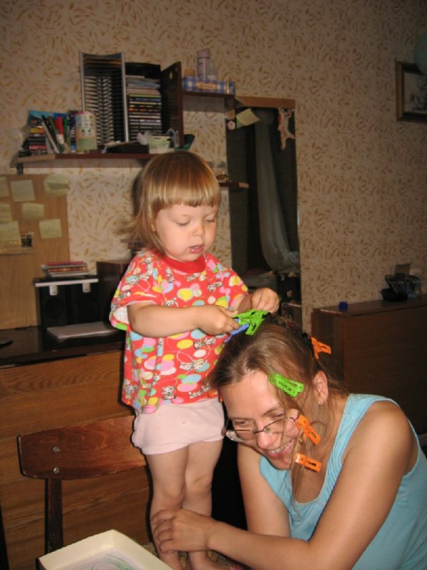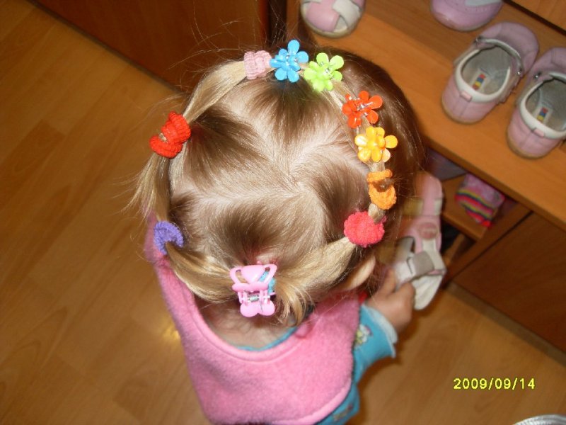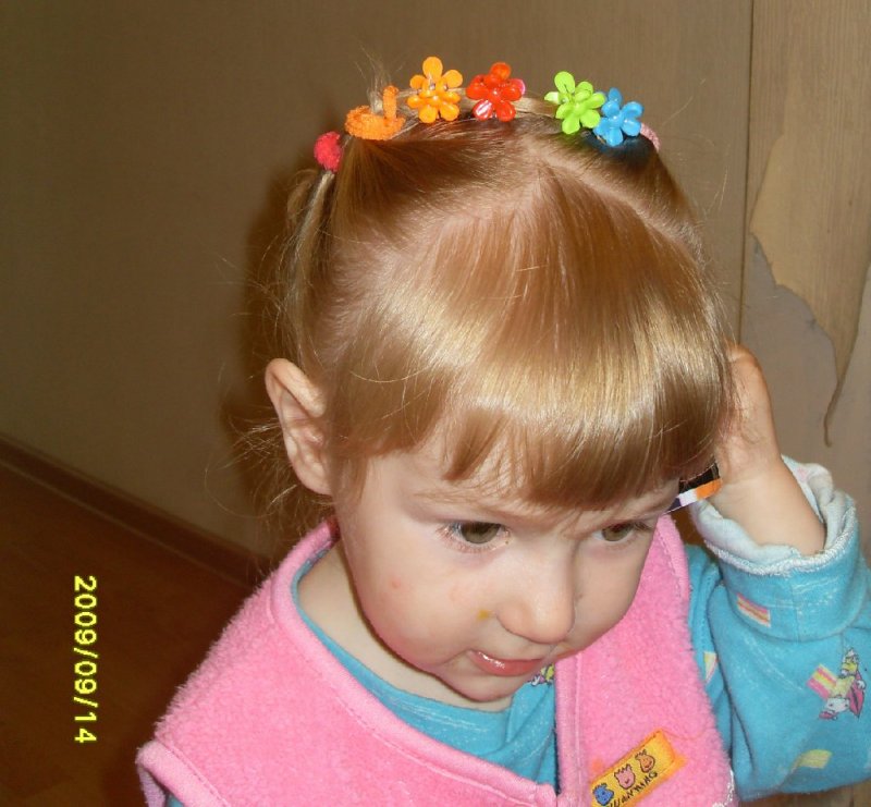 Мою дочу трудно уговорить и на хвостки...что делать не знаю, муж хочет дочу подстричь, а я не даю-такие милые локоны у доченьки. Резиночки на хвостиках, если и удается собрать кое-как , стаскиваем...