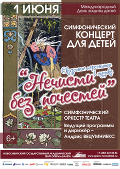 В третий раз в этом сезоне симфонический оркестр Новосибирского театра оперы и балета дает концерт для детей. В программе - Марш Черномора из оперы «Руслан и Людмила» Михаила Глинки, «Поганый пляс Кащеева царства» Игоря Стравинского из балета «Жар-птица», два произведения Модеста Мусоргского: «Баба-Яга» из цикла «Картинки с выставки» и Симфоническая картина «Ночь на Лысой горе», а также произведения Эдварда Грига, Александра Даргомыжского и Гектора Берлиоза.
