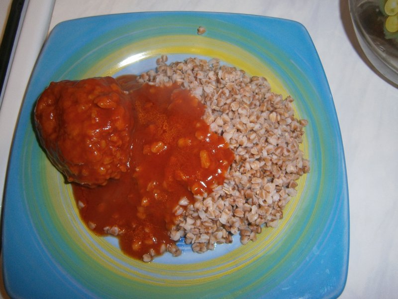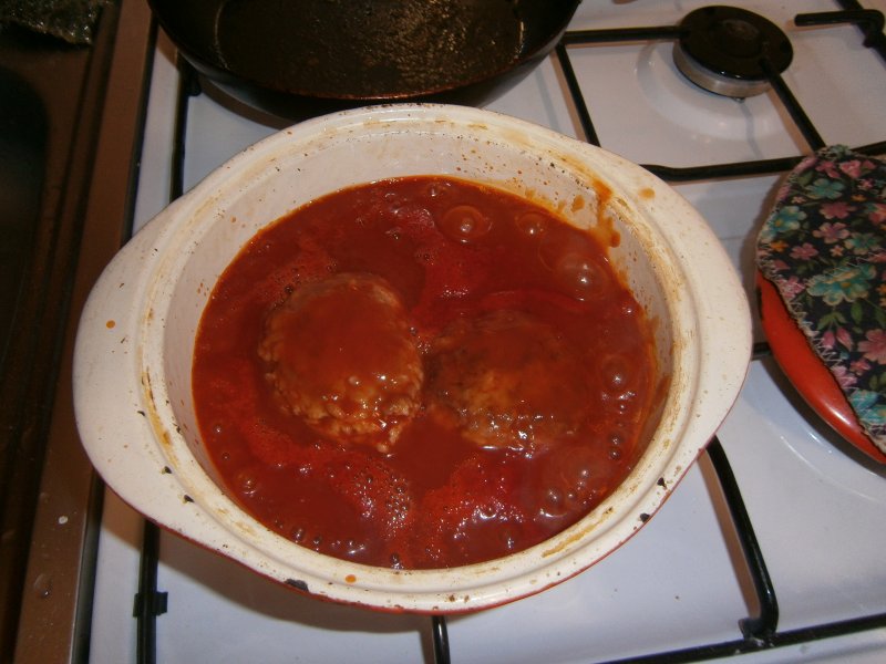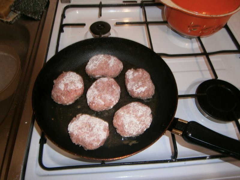 Мясо бройлера+рис (сегодня были с гречкой)+яйцо+соль и перец=тефтели.Обжариваю на сковороде до румяной корочки на раст. масле,выкладываю их,насыпаю пару ложек муки,поджариваю ее,добавляю воду+молоко (сегодня полчашки кефира 2,5%),соль,перец,довожу до кипения,кладу тефтели и тушу до готовности.На гарнир картофель был.  |