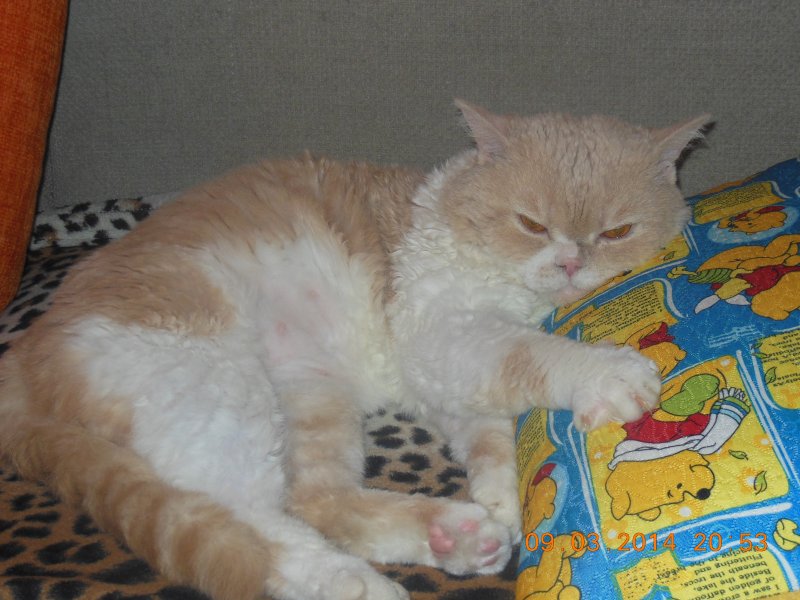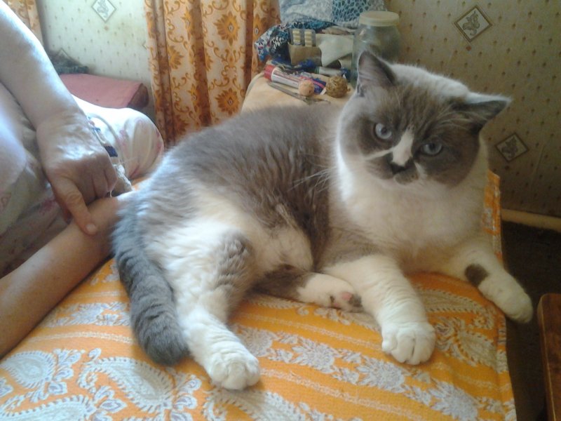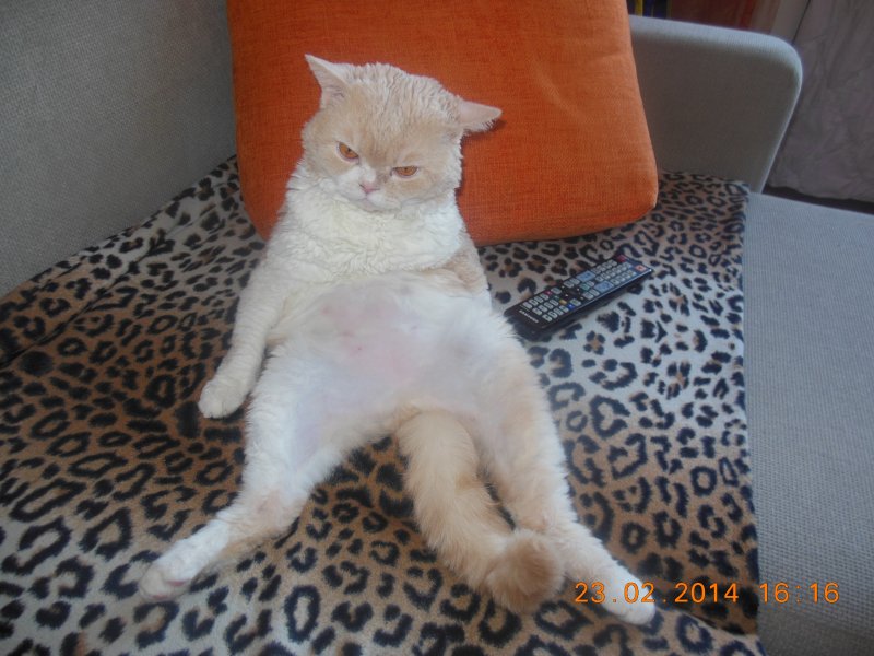 Наша светленькая принцесска, кстати, тоже вот так любит развалиться, все лапки по бокам от пуза) наподобие коронной позы шотландцев)
