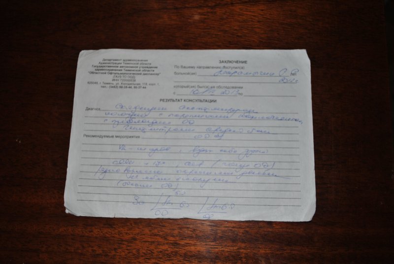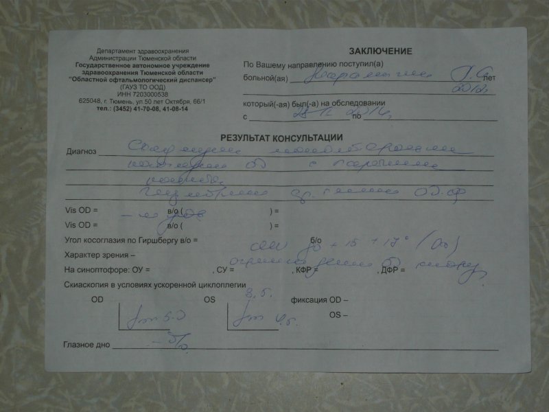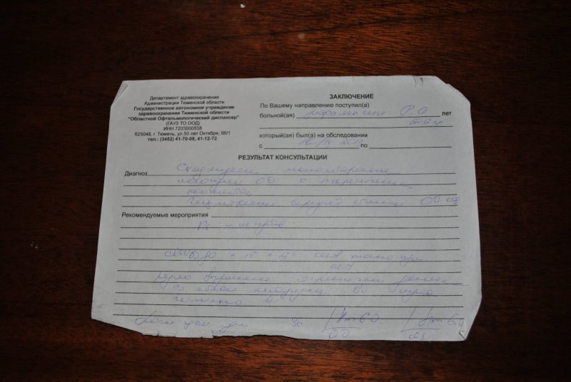 Сразу отмечу, что будет здорово, если сможете ответить до вечера понедельника, так как во вторник идем на прием к нашему офтальмологу и сможем запросить нужную информацию.