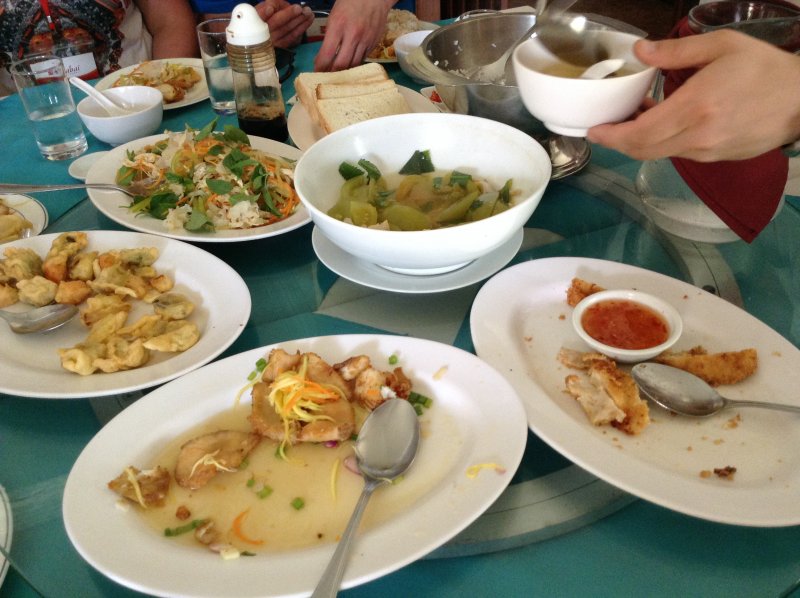 Я первый день очень страдала насчет еды, дабы не ем даже китайскую кухню в России, что уж говорить об остальной азиатской экзотике. Но там очень много кафе с европейской едой, поэтому лично я не то что улиток, я и риса обычного в их соусе не ела, только привычную пищу (к слову сказать, за 3 недели путешествия по Азии плохо было только от еды в Байок Скай в Бангкоке). Муж пробовал местное, но самая экзотика - салат кхмерский с сырым мясом - не зашел увы((