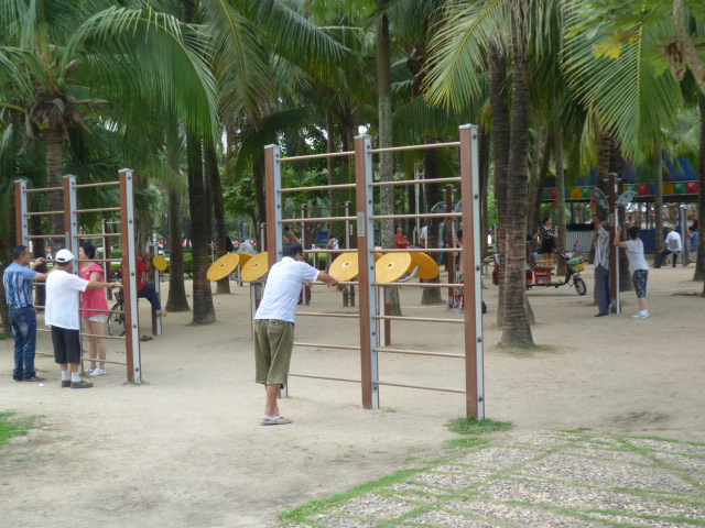 Китайцы делают зарядку на примитивных тренажерах во всех парках