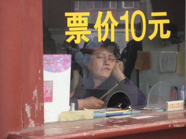 Пекин, вход в Запретный город - "Кассир спит - работа идёт"