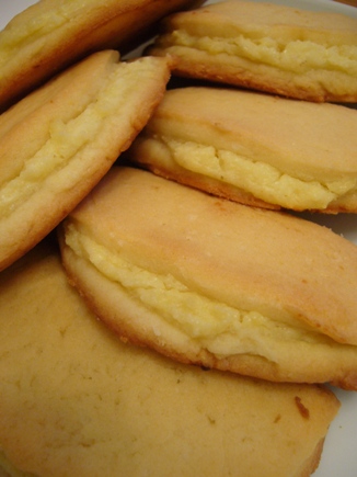 Я делаю так: 200гр масла или маргарина (размягченного), 100гр сахара и 3 яйца перемешать, всыпать ~450гр муки, снова перемешать. Тесто раскатать, вырезать кружкой лепешки, на середину каждой положить ложку начинки. Края лепешек завернуть. Начинка: 400гр творога, 90гр сахара, 50гр сметаны, яйцо и 60гр муки. |