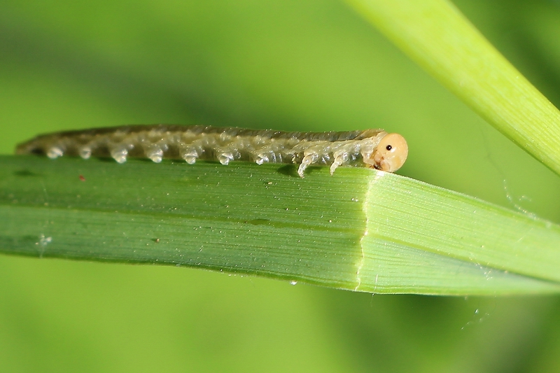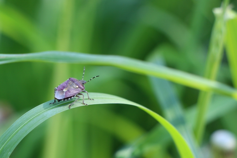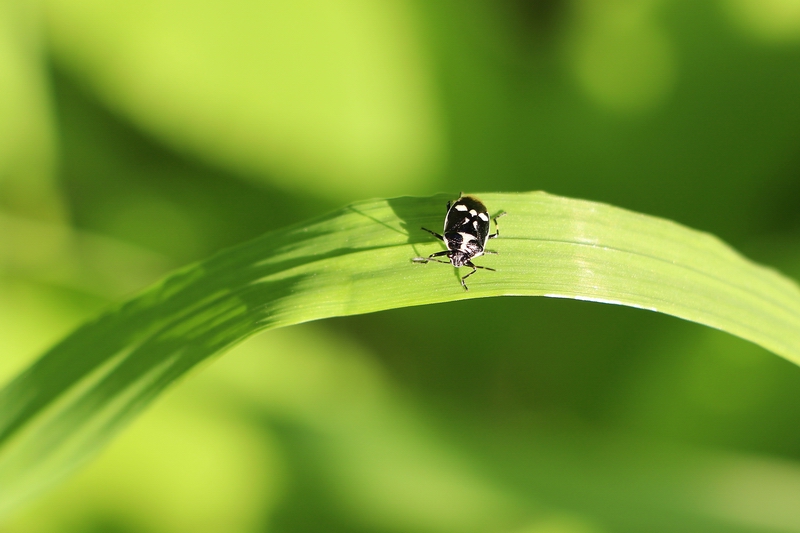 Я с одной стороны заглянула, он перебрался на противоположную сторону травинки, я с другой стороны, он - в обратную переместился.