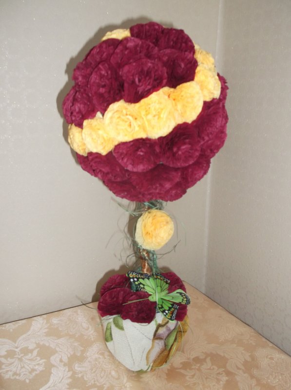 Меня зовут Елена. Случайно увидела в интернете фото красивого деревца из бумажных салфеток. На Новогодних праздниках решила попробовать сделать сама и меня понесло.