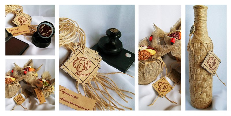 задумка была для именных бирок на крафт-бумаге и еще печать ставлю в описание к изделиям. Есть у меня авторская техника, вот именно к ним делаю описание на той же бумаге и в конце "С уважением, ЕМ (печать)"
