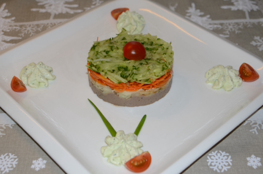 P.S. если у вас нет сыра, то этот салат можно выложить порционно, используя любую формочку: