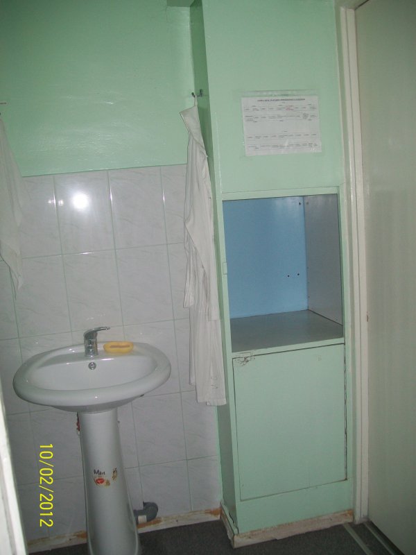В палате есть отдельно санузел, в котором находится унитаз, умывальник, поддон с душем. Всё чистенькое, целое.