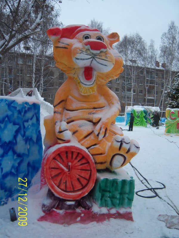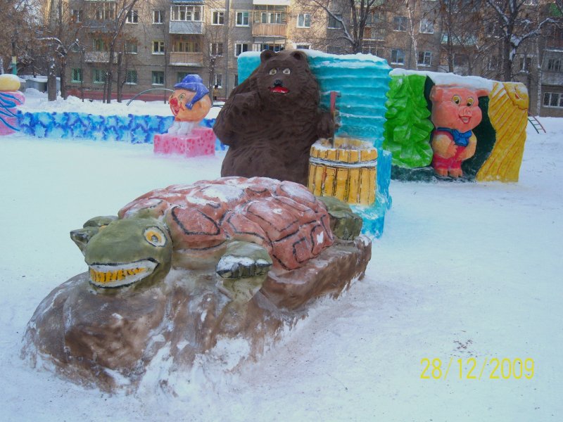 Мы построили Зимний городок для наших жителей. имеются 3 горки для разного возроста. качели. лабиринт. фигуры разные/ тигр. мышь. медведь. волк. поросенок. колобок./ большая Елка.Все это создавали из снега в жуткие морозы перед Новым годом. с раннеего утра и допозднего вечера. Городок на наш взгляд получился супер. Приглашам всех покататься на горках.