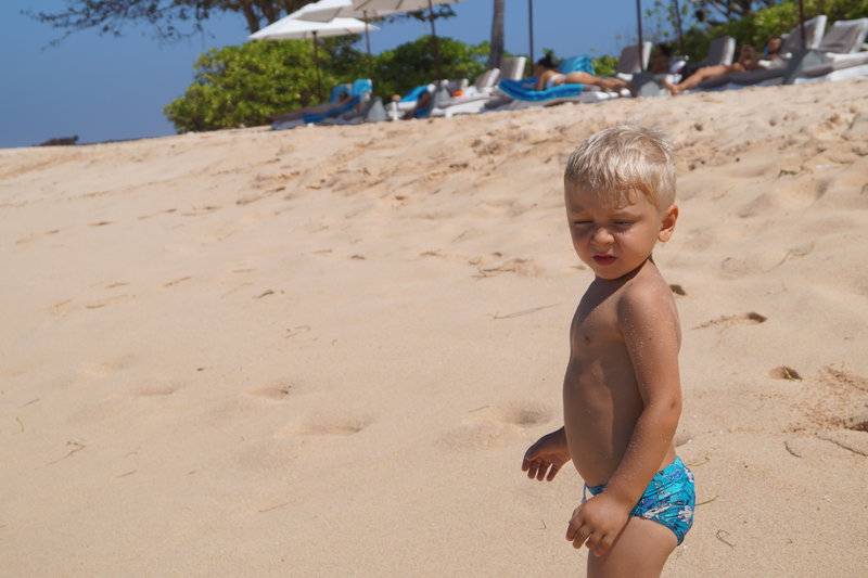Хилтон, Нуса Дуа. Волны всегда, плавать можно только в бассейне. Недалеко находится пляж Гегер (Geger), где можно плавать.