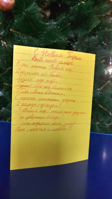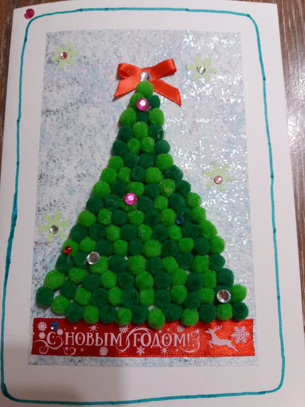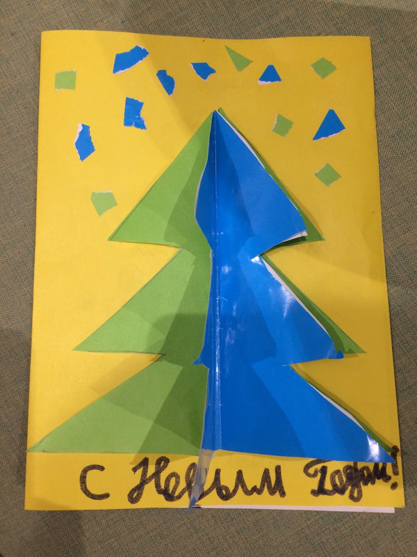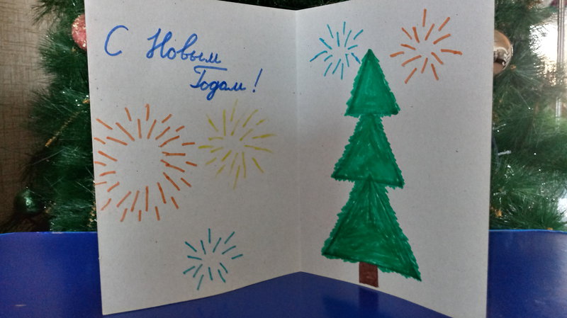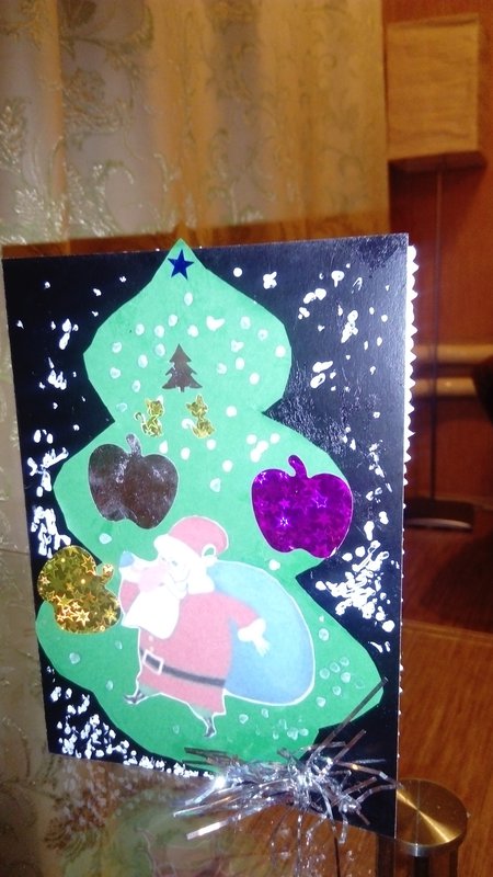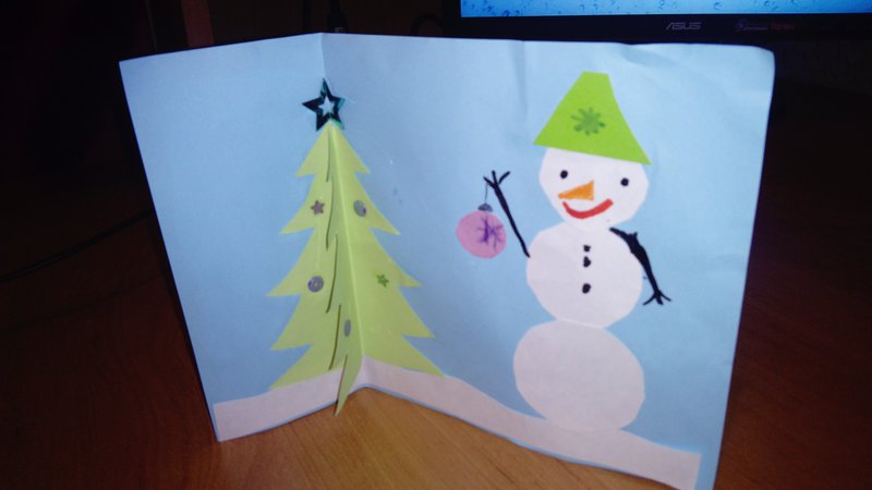 сегодня дочка (8 лет) сделала открытку для бабули и дедули к новому году, конечно старшая дочь ей не много помогла :D