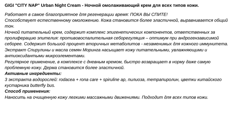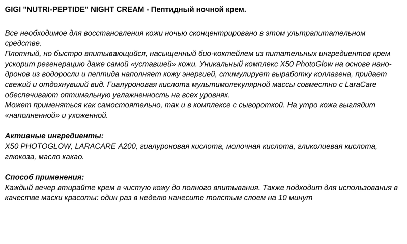 100% омолаживающая терапия (ревитализация и ремоделирование кожи) на косметике GIGI Утром:
