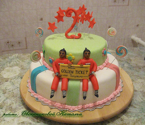 я тут у вас новенькая, пишу первый раз, хотя читаю уже с полгода, наверное, вот решилась (аж коленки трясутся) поставить свой тортик, первый мой обтянутый мастикой (из маршмелло). до этого только кремом украшала. очень хочу критики (внутри в верхней башенке - улитка с трюфельным кремом, в шоколаде, в нижнем сердечке - алтайский медовый с черносливом и орехами, крем - сливки+вареная сгущенка, цветочки - мастика из мм, верхнюю башенку обтянула шоколадной сеткой, но по оплошности взяла молочный шоколад, и он у меня сразу же весь осел, у нас дома очень жарко)