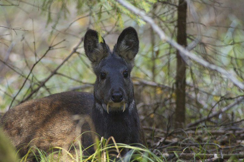 Уникальное животное. Олень не олень. Косуля не косуля. Маленький такой оленёк. Пугливый и постоянно прячущийся в кустарниках и других зарослях. Иногда папоротники значительно выше этого животного. Содержание в неволе данного вида сложно и обусловлено тем, что 95 процентов от объема поедаемых продуктов кабарги составляют лишайники.